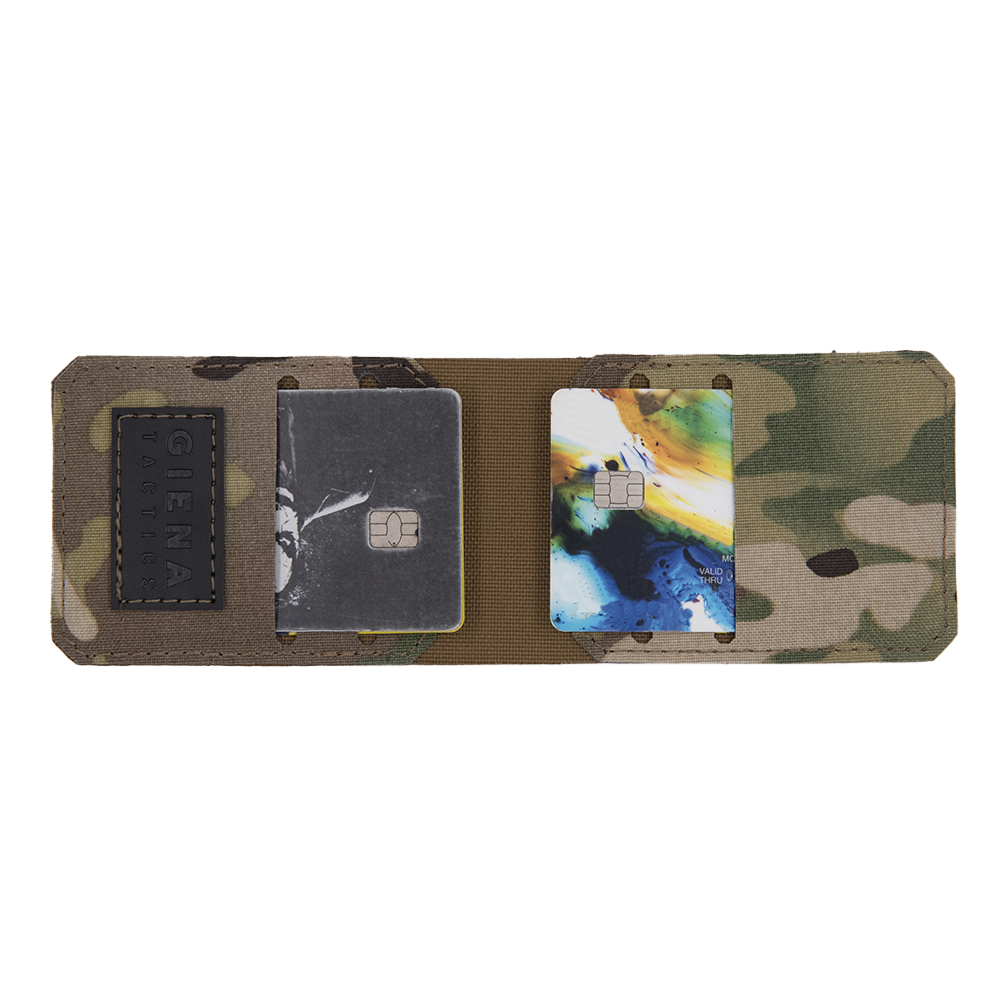 Раскладной картхолдер — развитие базовой модели, созданное для тех, кому важна дополнительная защита карт и более закрытая конструкция. Он сохраняет минимализм и тактический характер, но предлагает иной формат использования — карты располагаются внутри, а не снаружи.