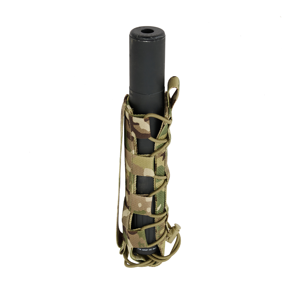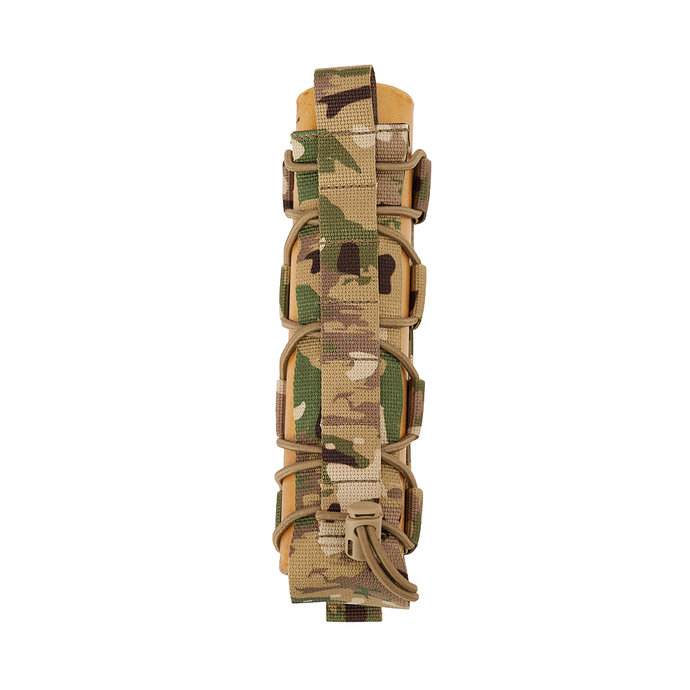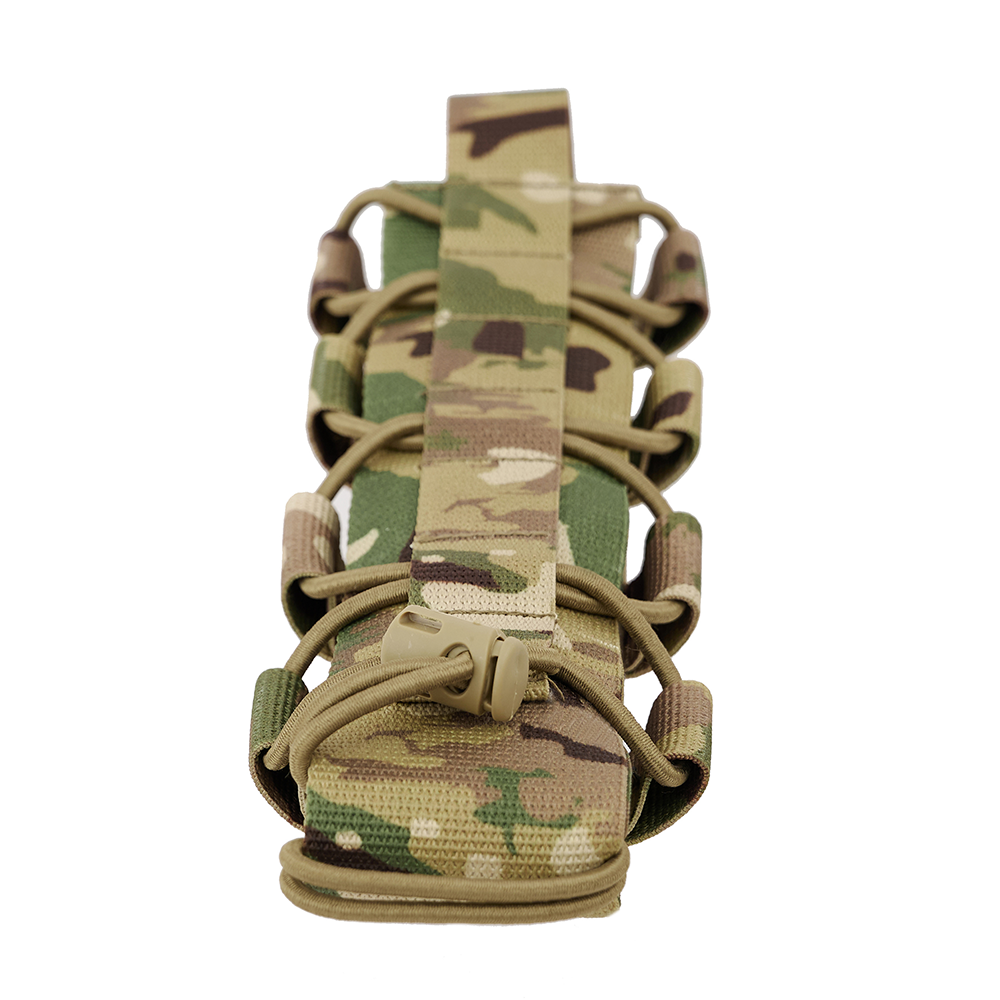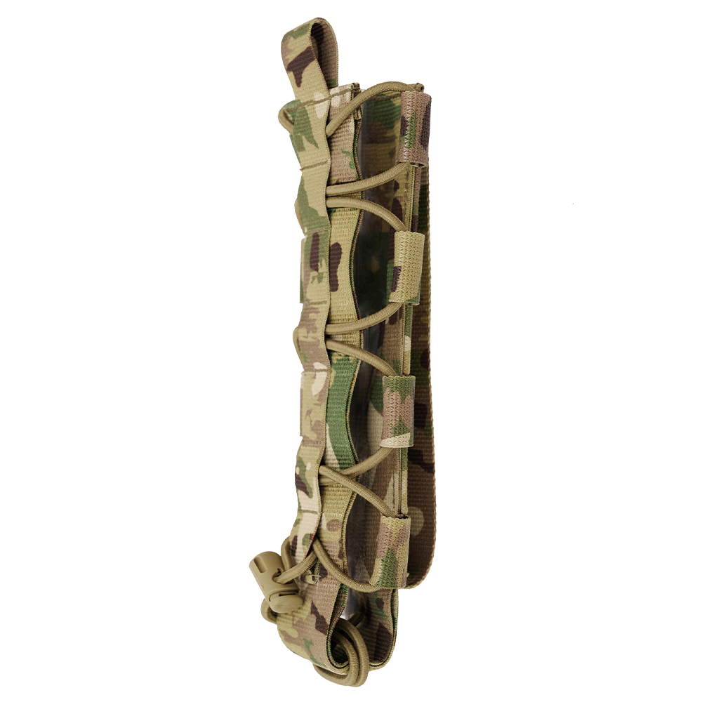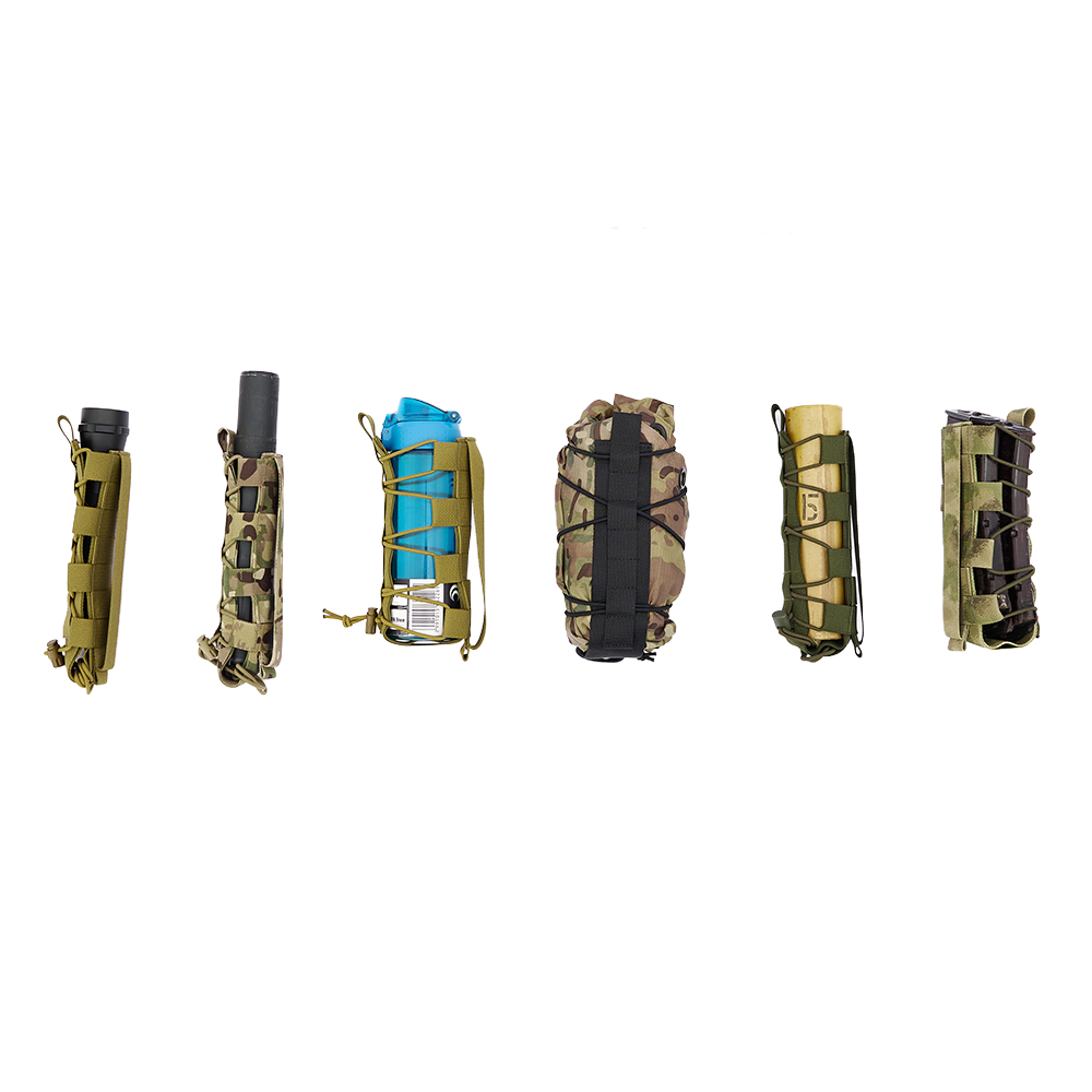 Эластичная система утяжки, расположенная по всей высоте изделия, позволяет изменять внутренний объём и адаптировать подсумок под предметы различной толщины и формы. Специальная система фиксации на основе резинового шнура с фиксатором надёжно удерживает содержимое и предотвращает его выпадение при движении, смене положения тела или работе в динамичной среде.