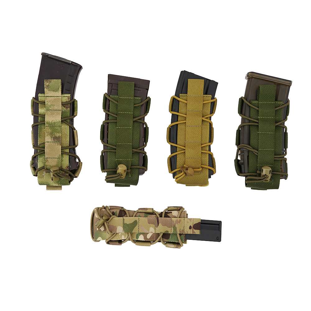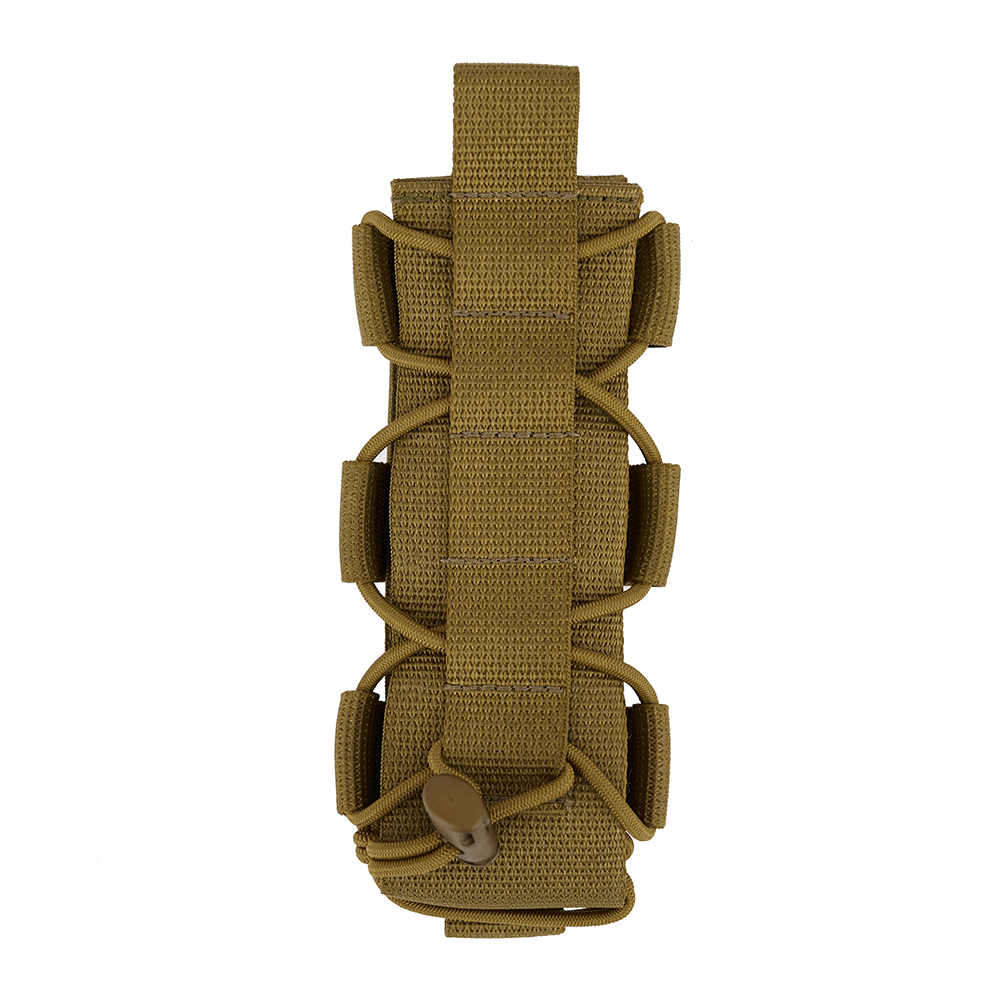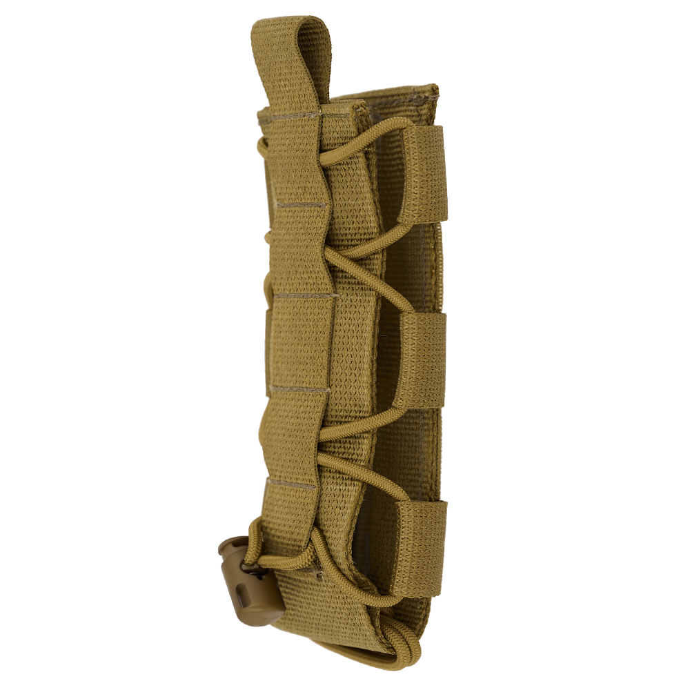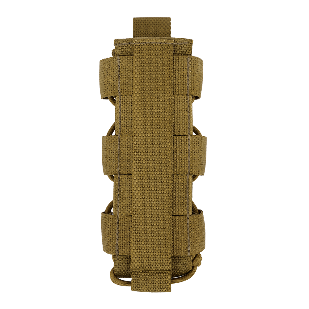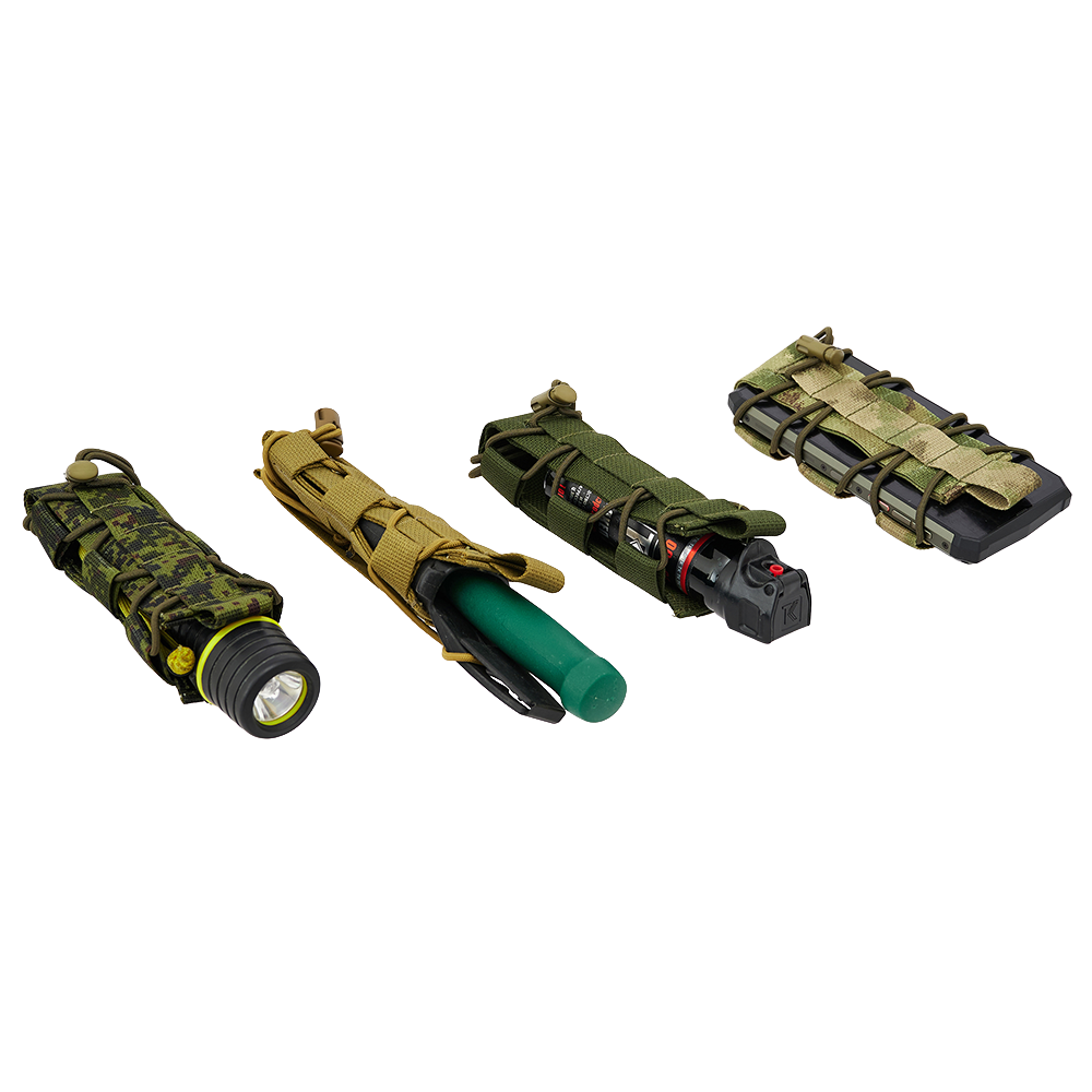 Эластичные шнуры, расположенные по всей высоте подсумка, позволяют изменять внутренний объём и адаптировать его под предметы различной толщины и формы. Подсумок может использоваться как в компактной конфигурации, так и в расширенном варианте без необходимости изменения положения на снаряжении.
