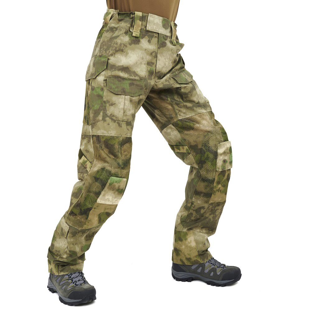 Такое сочетание материалов обеспечивает баланс между вентиляцией и структурной стабильностью изделия. Увеличенная площадь вентиляционных зон позволяет повысить эффективность теплоотведения при сохранении общей прочности тактических брюк.