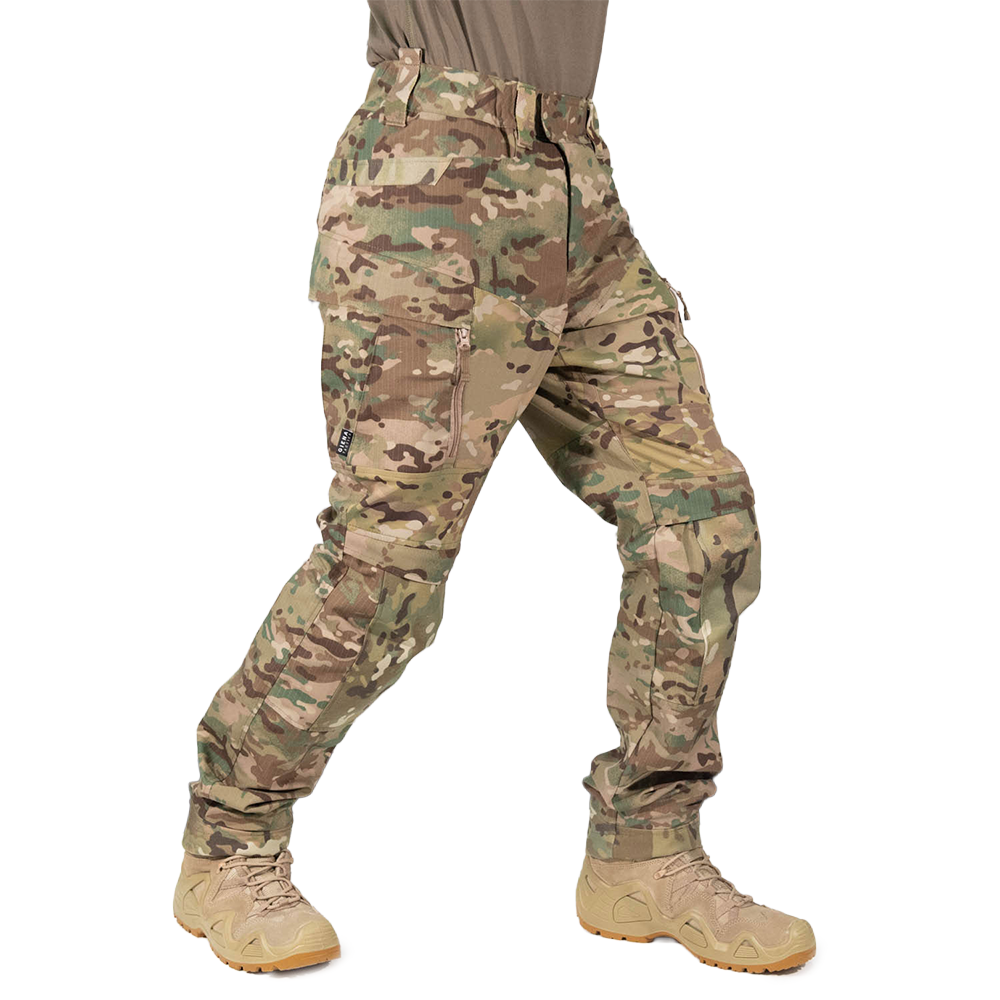Основная ткань брюк выполнена из сочетания рипстопа и спандуры, что позволяет совместить устойчивость к истиранию и нагрузкам на разрыв с сохранением эластичности материала. Такое сочетание обеспечивает комфорт при движении и снижает риск повреждения ткани при регулярной эксплуатации.