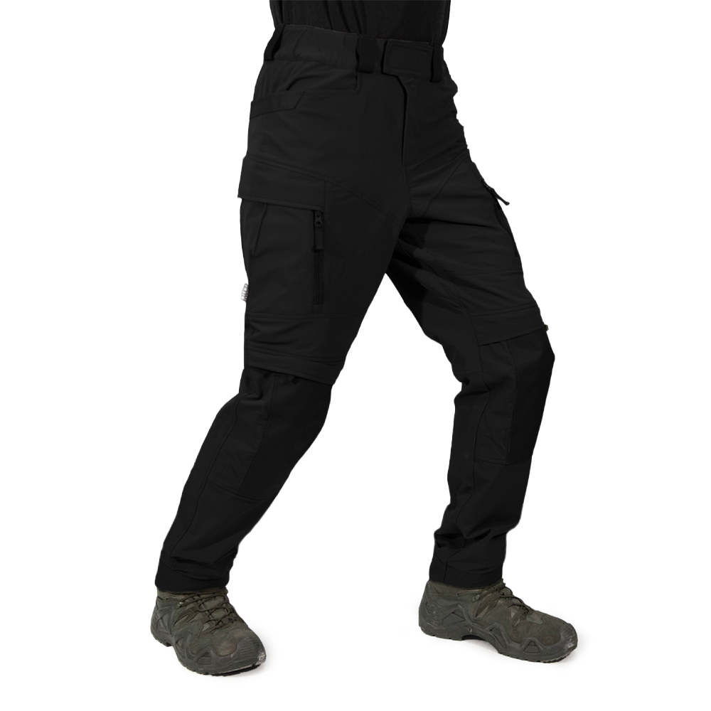 В зонах, наиболее подверженных износу, — в области колен и низа штанин — применены усиленные вставки из Cordura 1000D, повышающие прочность конструкции и устойчивость к механическим воздействиям.