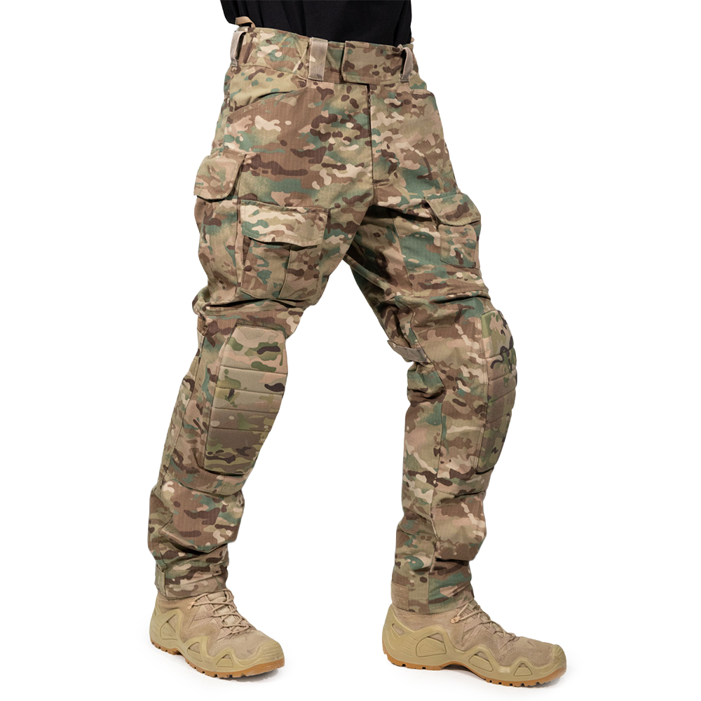 Вшитые наколенники выполнены из кордуры в расцветках Мультикам, ЕМР1, Atacs FG / Мох, Олива, Чёрный, Койот Браун.
