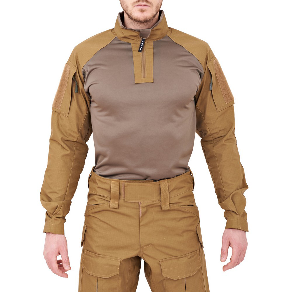 Основные швы выполнены плоскими, что снижает риск натирания и давления на кожу при длительном ношении и работе в экипировке. Торсовая часть имеет увеличенную длину, благодаря чему рубашка сохраняет заправленное положение и не выправляется из брюк при активных действиях и наклонах.